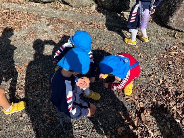 「こんなに大きいの見つけたよ!」などどんぐりを拾ったり落ち葉を見せてくれました♡
