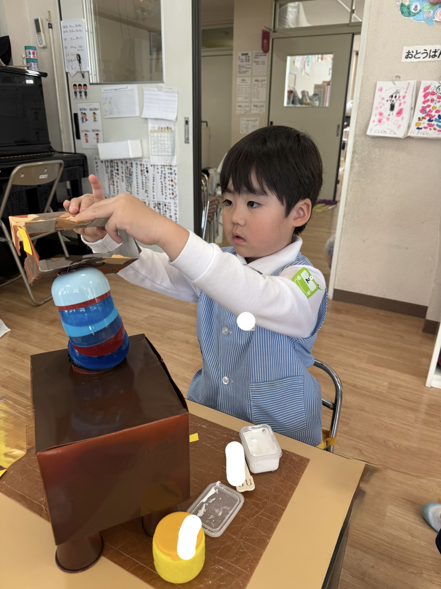 最近のすみれ組さんは作品展制作を頑張っています!共同テーマの制作では動物をモチーフにおもちゃを作っていますよ〜!