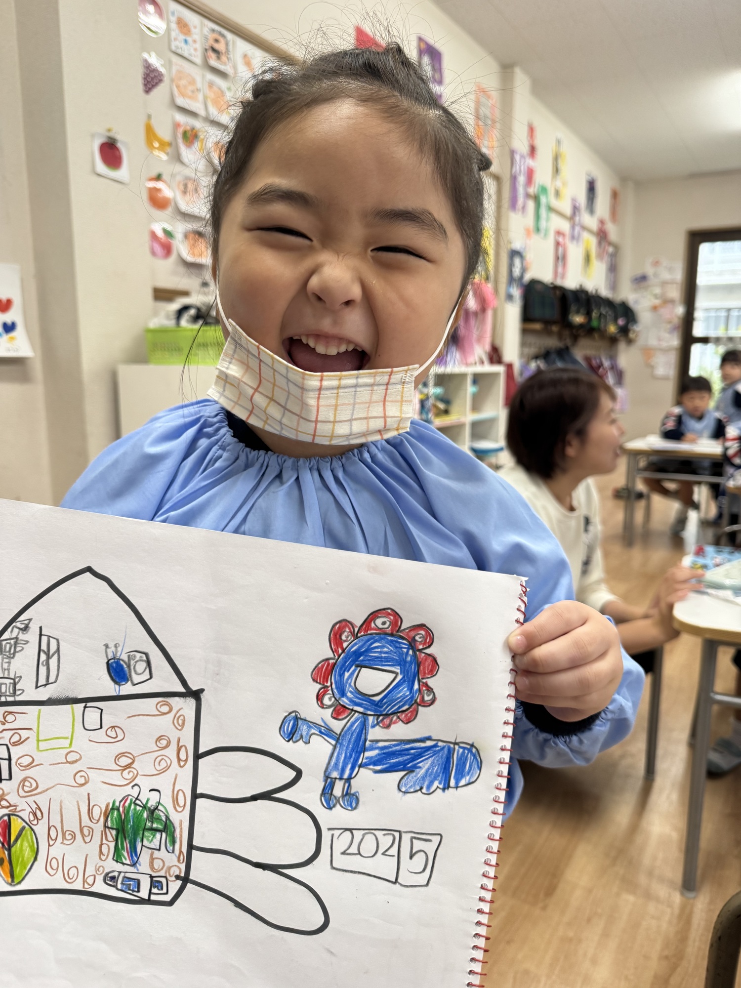 ミャクミャクに会えたことは嬉しかったようで自由画帳に描いてくれるお友だちもいました♪
