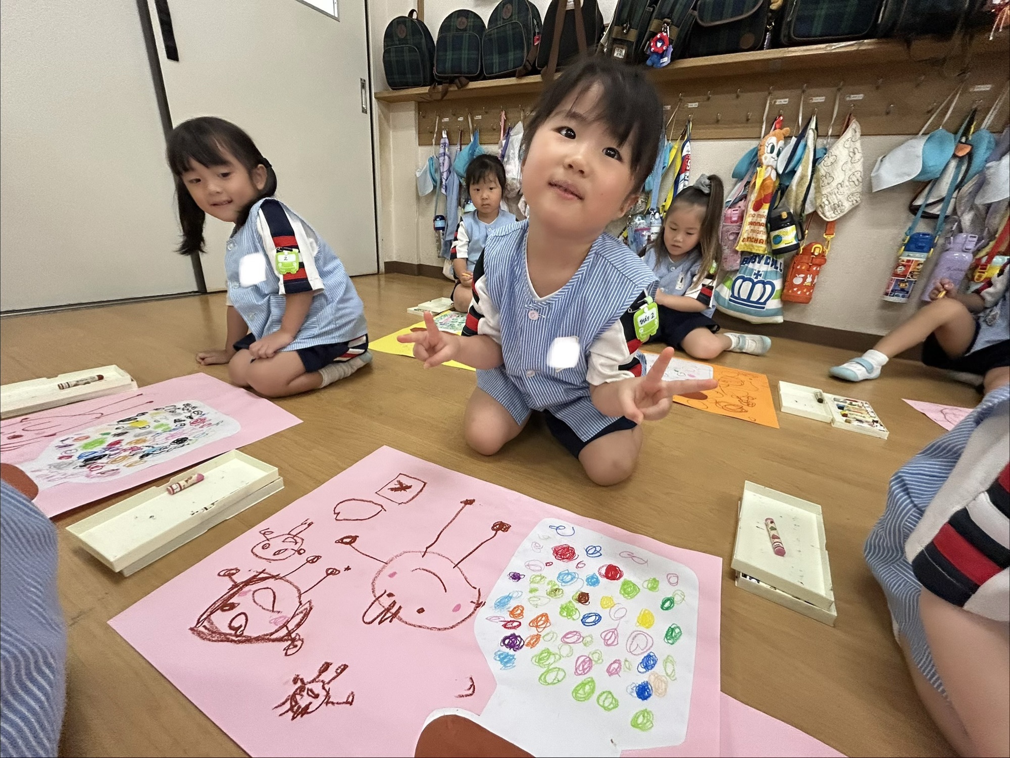 絵がどんどん上手になる3組さん˶˃ᴗ˂˶「みてみて!これ先生!」「まま描いた!」と楽しそうに描いていました!