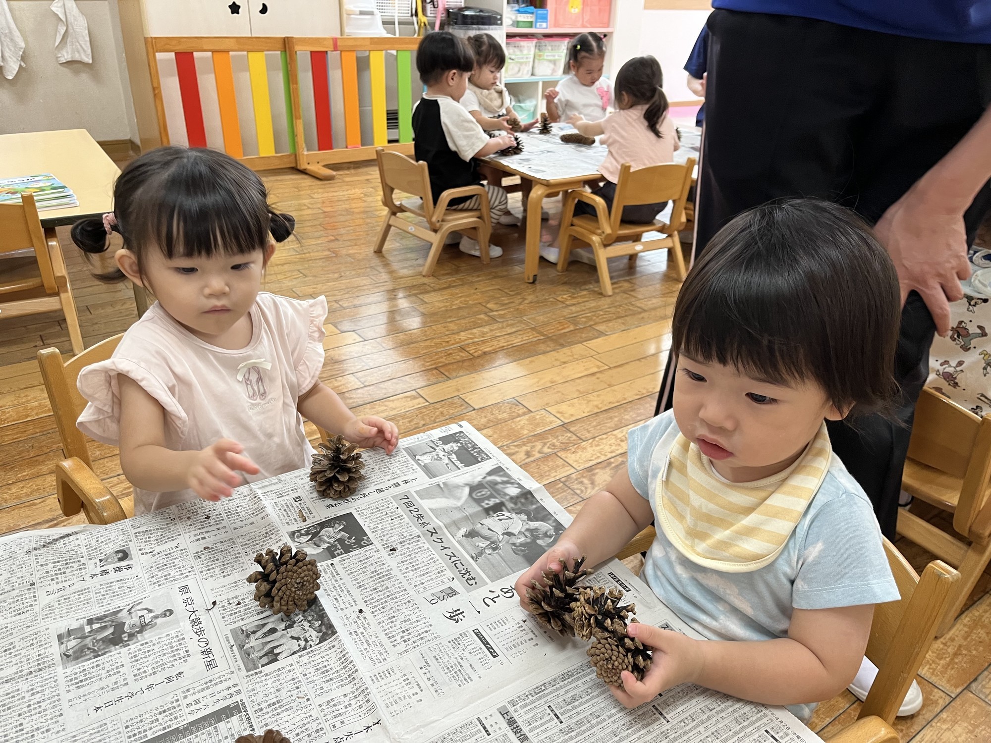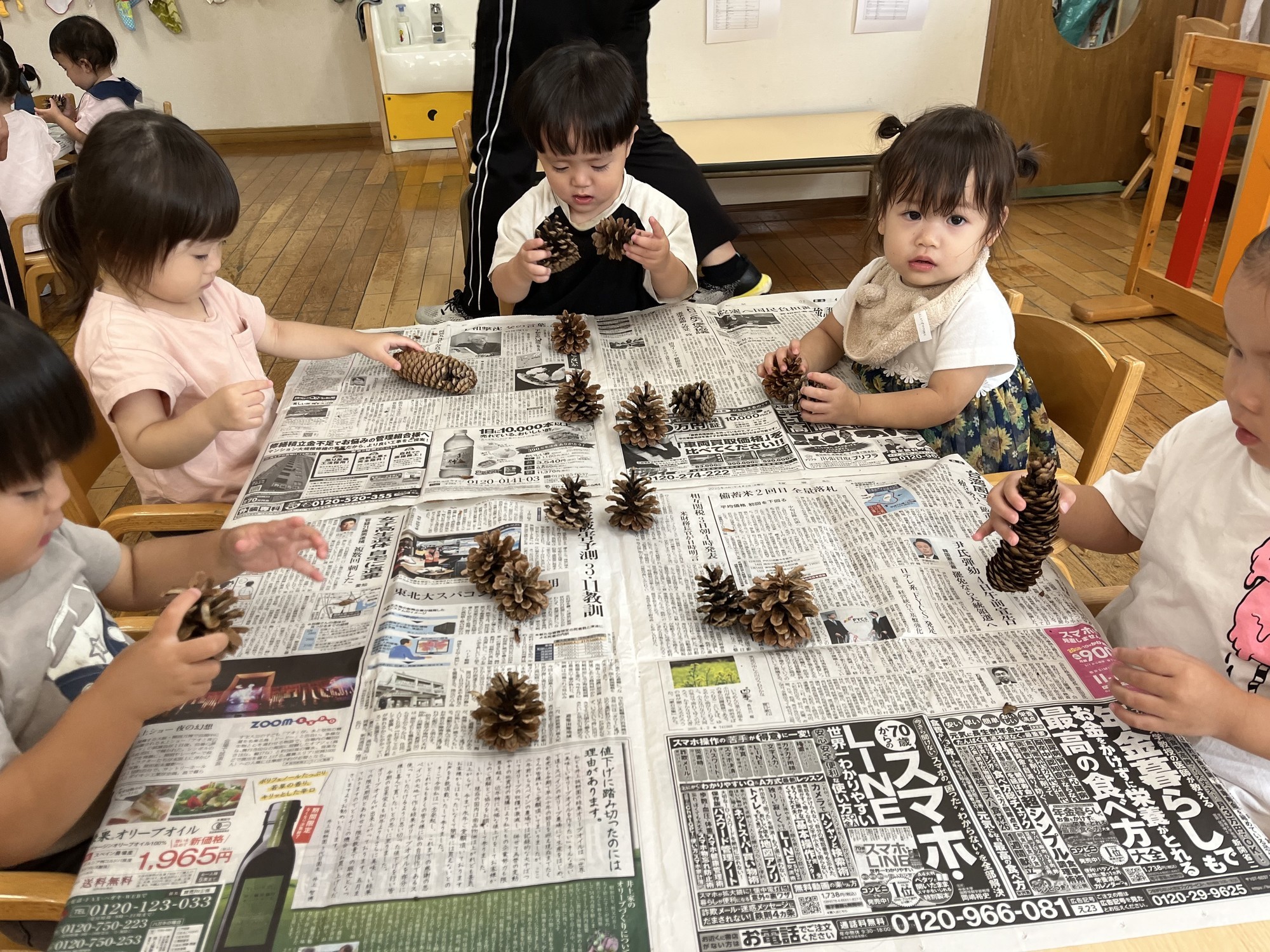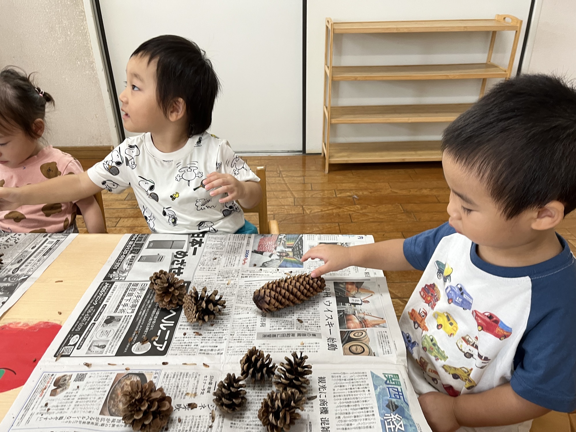 園庭の松ぼっくりは、もう少し秋が深まったら拾いに行きたいと思います♪