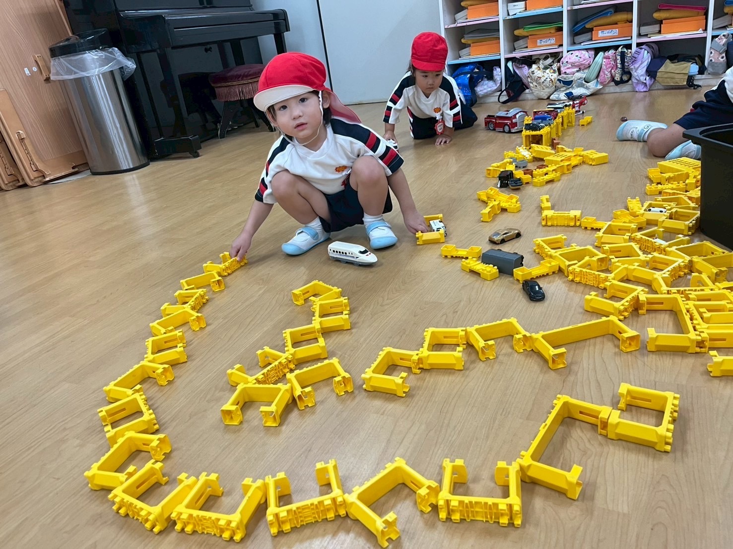 お部屋での遊びも集中して色んな物を作っては友だちに見せたり保育者に見せたりしていました。