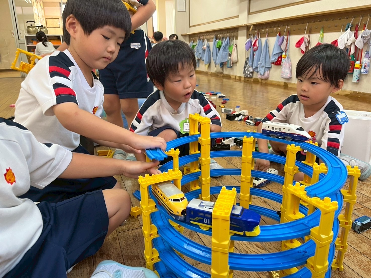 9月に入ってからも暑い日が続く中子ども達は暑さに負けず元気いっぱいに過ごしていました。戸外遊びに行くのが大好きな子ども達夕方になり少し暑さがマシになった日はたくさん走って戸外遊びを楽しんでました。