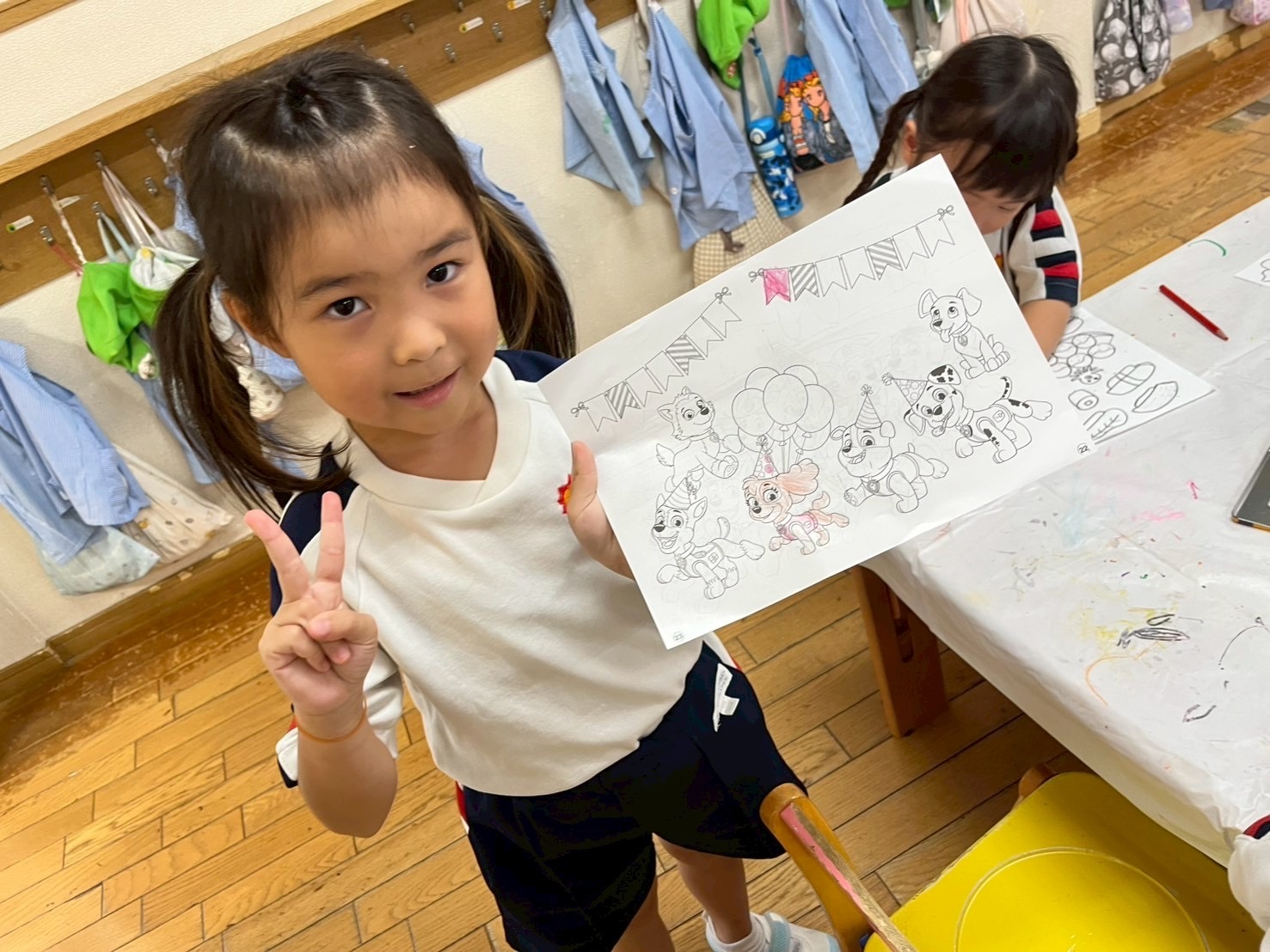 塗り絵ではすぐにやめてしまっていた子も上手に塗っている友だちやお兄ちゃんやお姉ちゃんを見て、時間をかけてじっくりぬってくれるようになりましたよ。