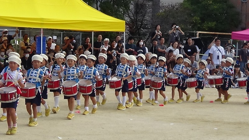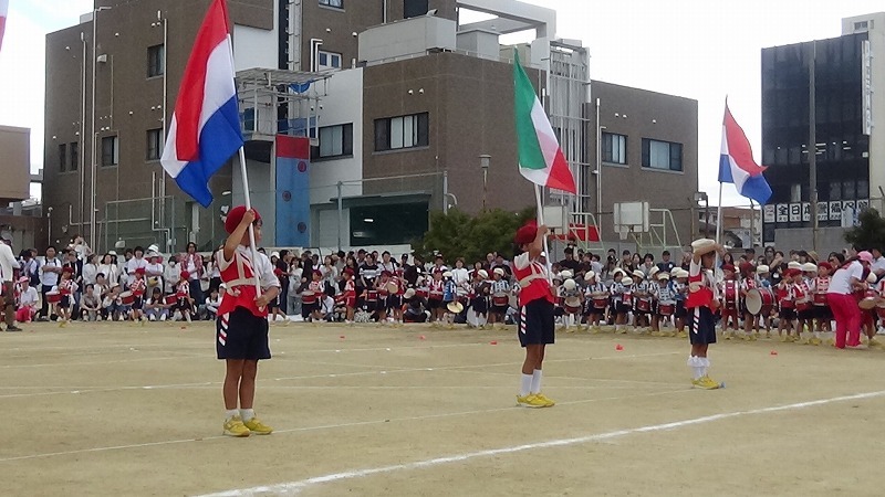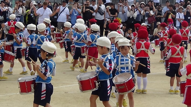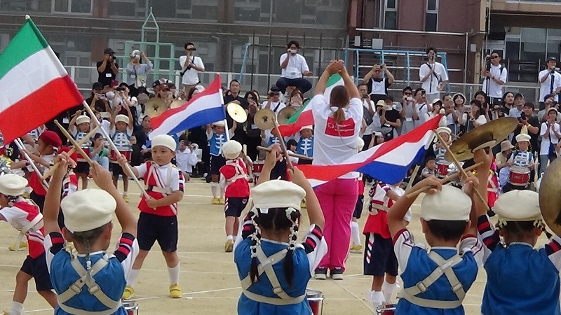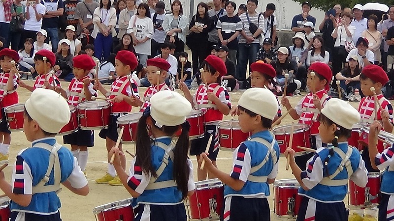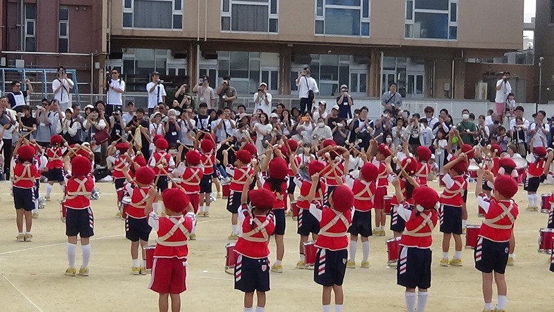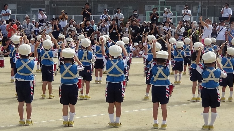 開会式が終わると、鼓隊のファンファーレ、オープニングにぴったりです。