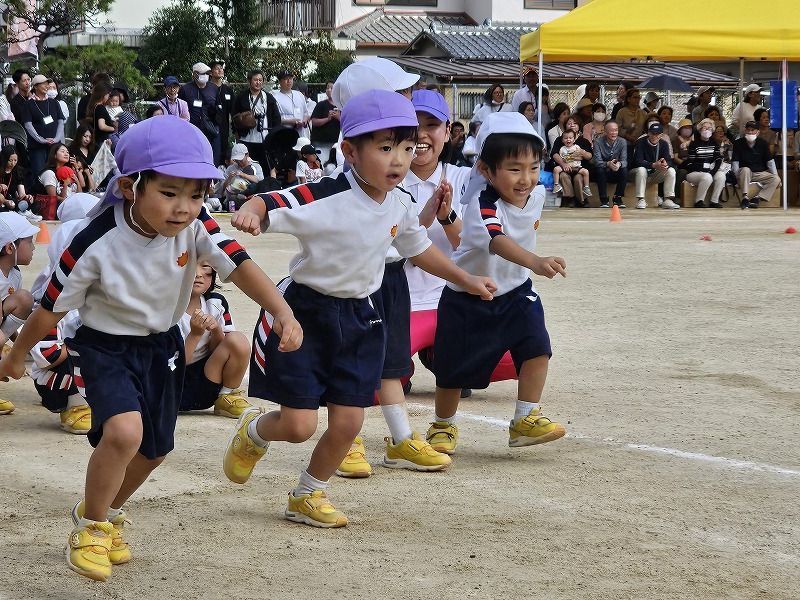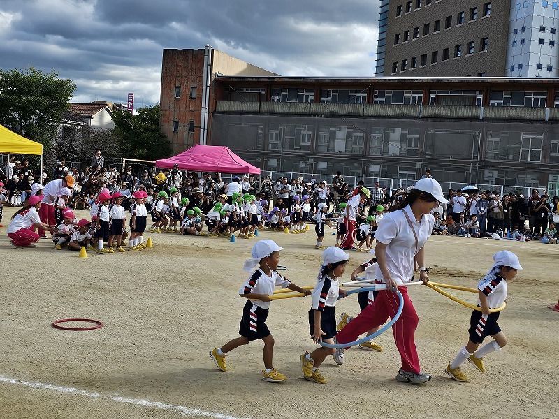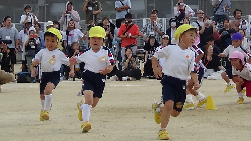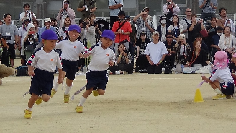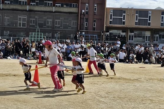 一人一人が競走する「かけっこ」とはまた違って、協調することを学びます。