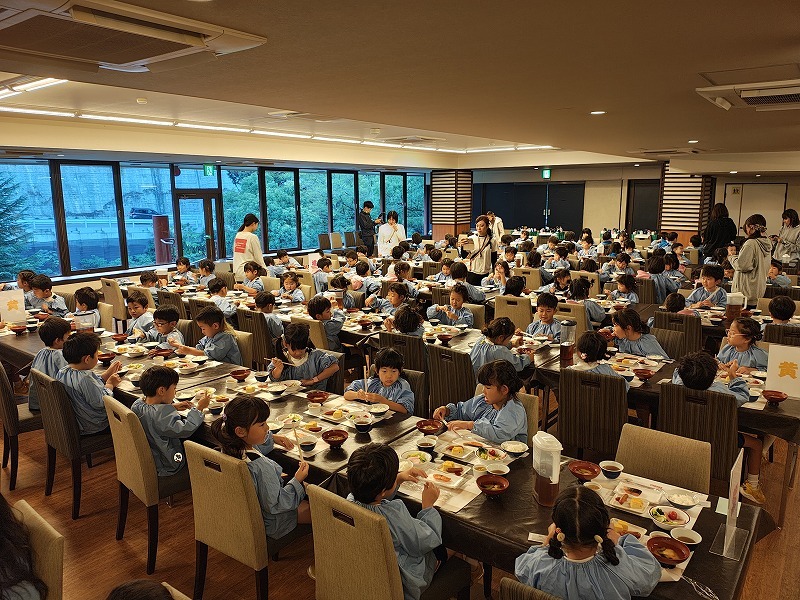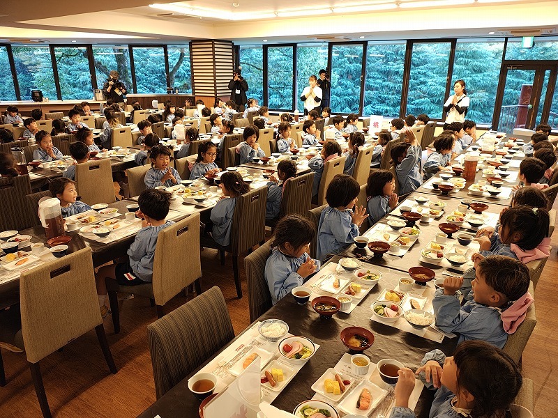 1日目の思い出を振り返りながら、しっかりと朝食をいただきました。