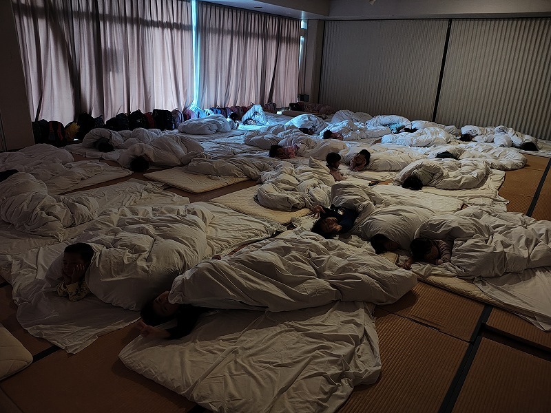 昨晩は、お友達と初めての夜を過ごし、ちょっぴりドキドキしながらも、みんなぐっすり眠れたようです。