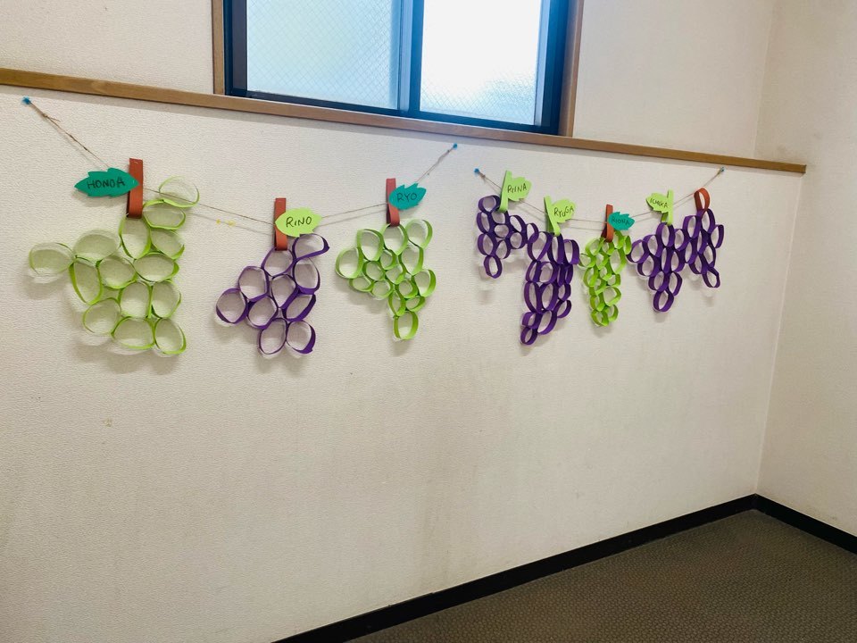 ぶどうチームは、画用紙で輪をつくりぶどうの形に見立てて糊で繋ぎ合わせました☆