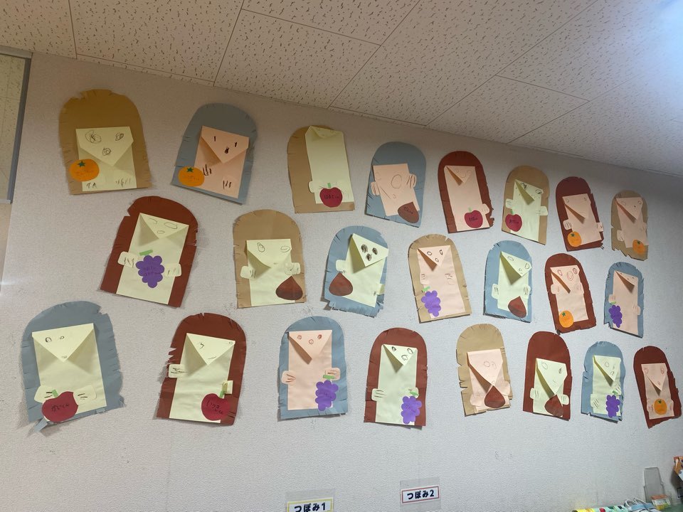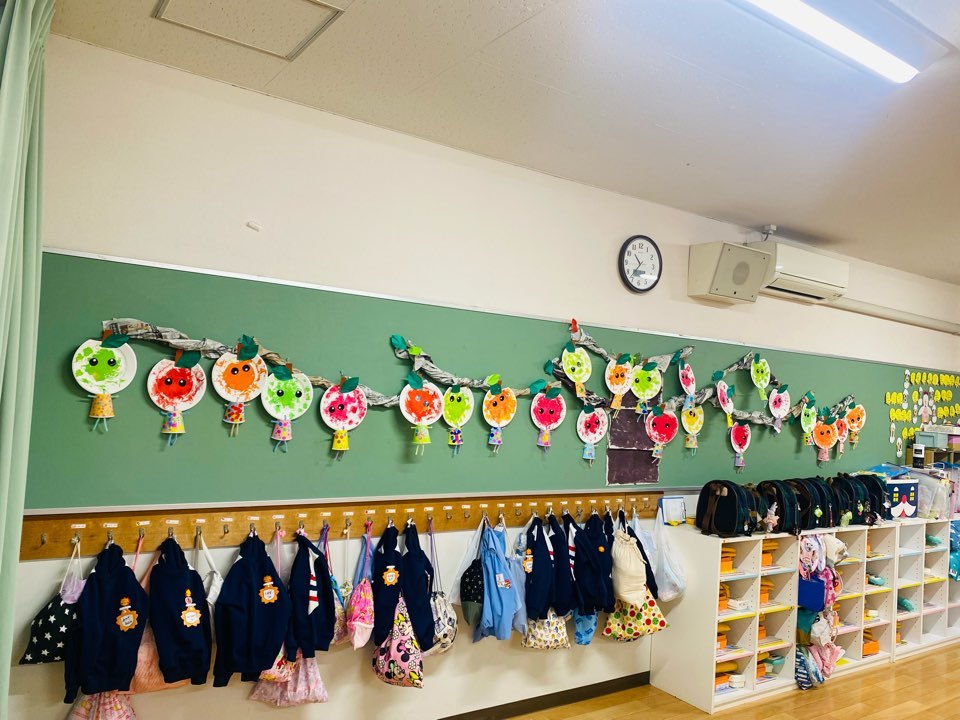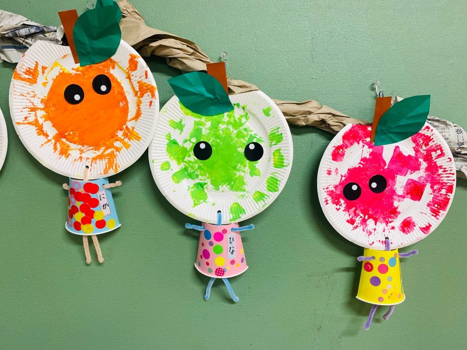 今回は、秋の果物にちなんでりんごかぶどう、子どもたちに作りたい方を決めてもらって、それぞれ作業を分けて作りました☺︎