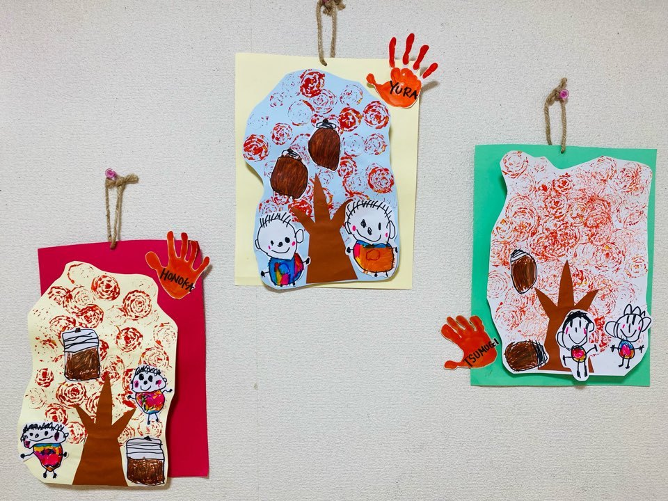 落ち葉やどんぐり、まつぼっくり等を拾って幼稚園に持って来てくれるお友だちもいます♪