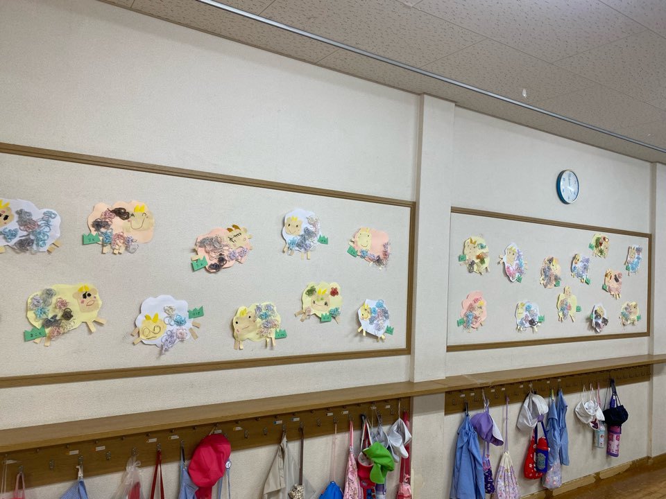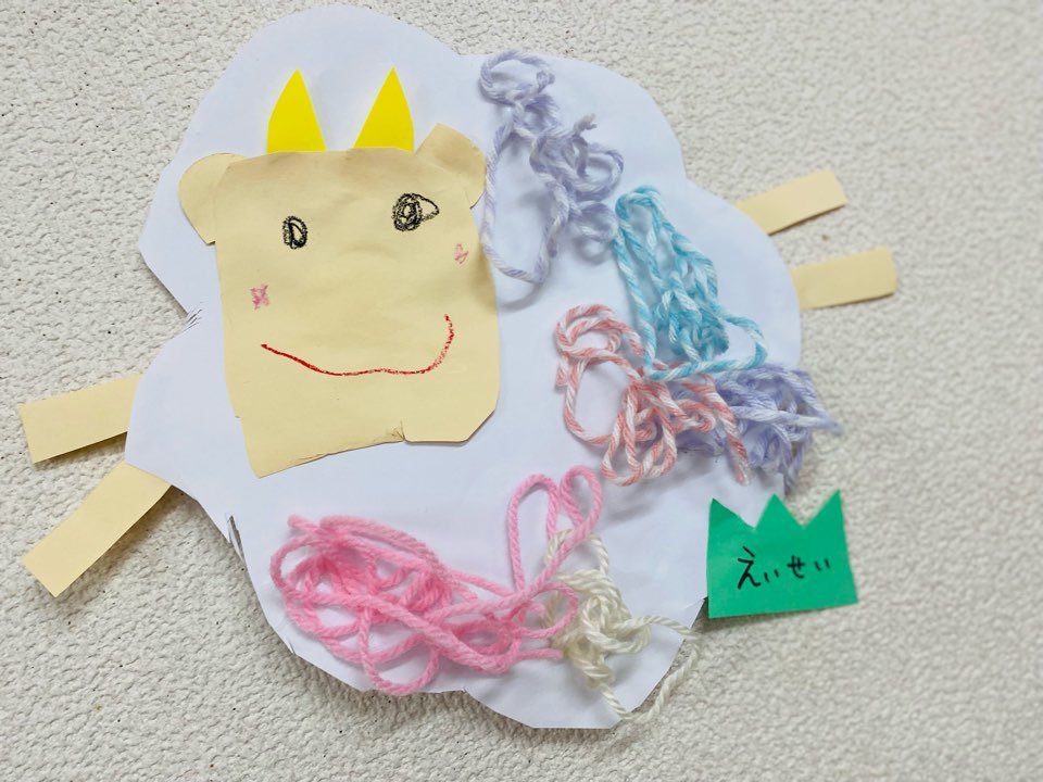子どもたちは「どんな形にしたら犬に見えるかな?」「目や鼻はここかな?」と想像しながらパーツを選び、貼り方にも工夫していました。猫やうさぎ、犬など、、、みんな違う表情の可愛い動物たちが完成しました^_^♡
