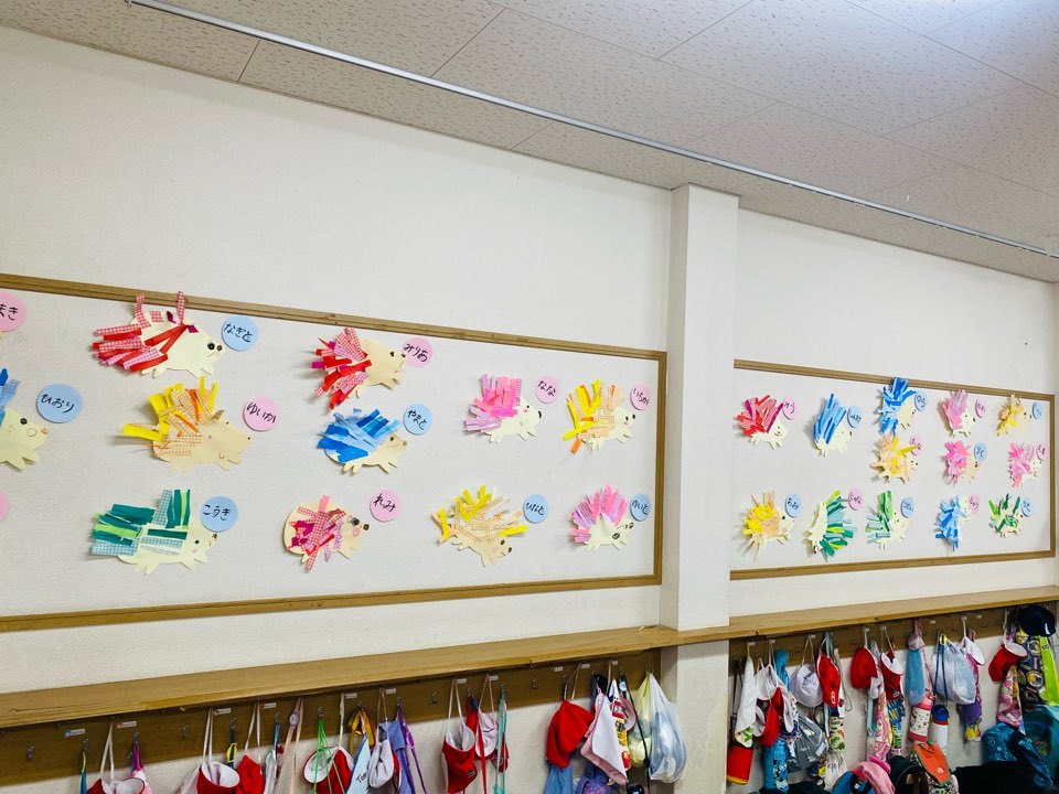 お顔もクレパスで描けるようになり、個性のある楽しいハリネズミがたくさん出来上がりましたよ。(≧∀≦)