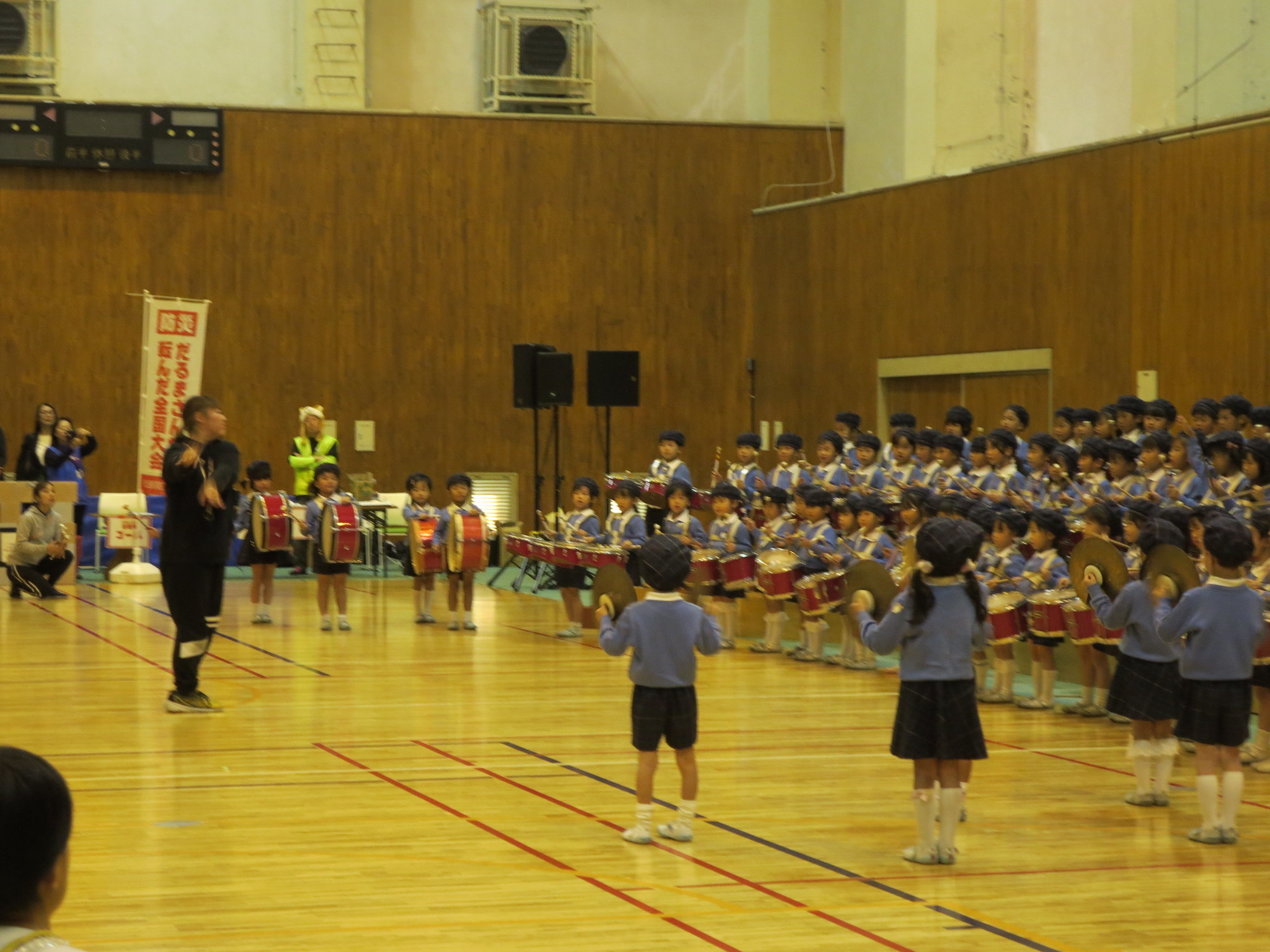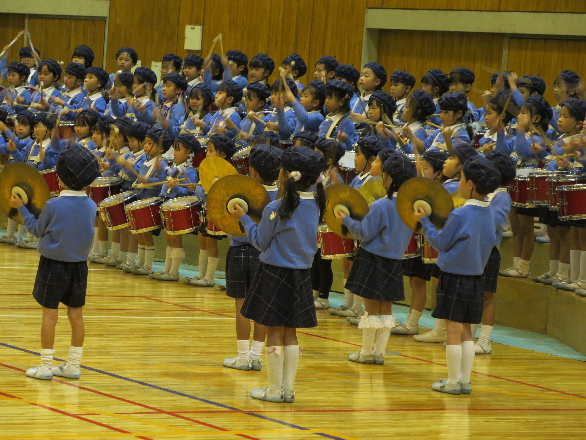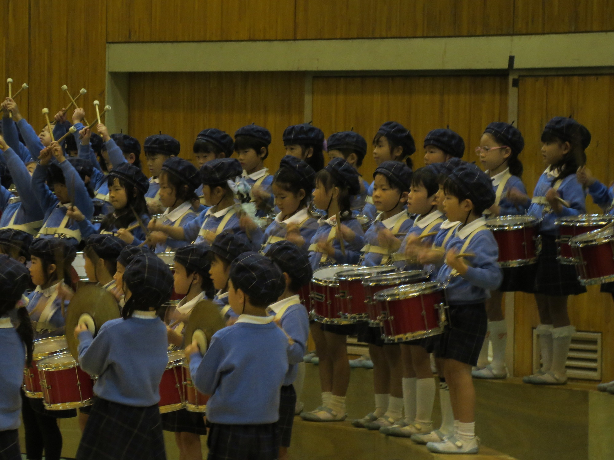 あり、年長さんがオープニングで鼓隊を披露しました。