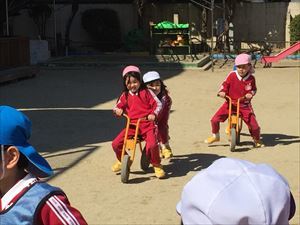 最後は、2輪車に乗ってリレー!