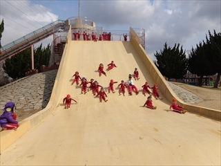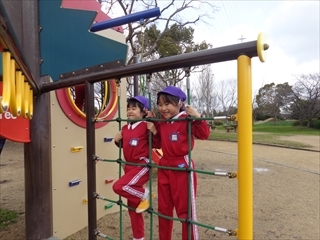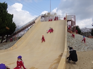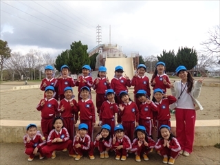 お別れ遠足 大泉緑地 楽しかったね♪(年長組) 2019/03/12 今日は待ちに待ったお別れ遠足!! 朝雨が降ってお天気が心配でしたが、だんだん晴れてきました♪ まずは写真をぱしゃり! そしてたくさん遊びました☆ お弁当もとっても喜んでぺろりと食べていましたよ! おおきいすべり台も、少し怖くて泣いてしまうお友だちもいましたが 何回も滑って遊んでました♪ たくさん遊んでたくさん笑って とーーーーーーーっても楽しい一日でした!! 卒園まであと少しですがあと数日 元気に幼稚園に来て下さいね♡