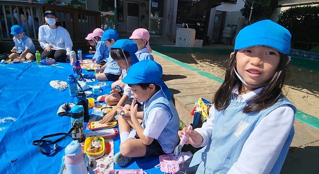 お弁当のお歌を歌って、「いただきます」のご挨拶をして、大好きなお友達と一緒に食べて、終始笑顔の子どもたち☆