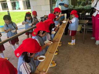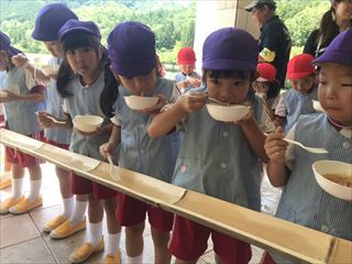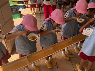 お泊り保育☆到着しましたよ!! 2019/07/16 楽しみにしていたお泊り保育!!無事ユニトピアさささやまに 着きましたよ\(^o^)/ 早速そうめん流しをしました(*^-^*) みんな、とっても楽しんでいましたよ!! みんなで食べる流しそうめんはとっても美味しかったです♡