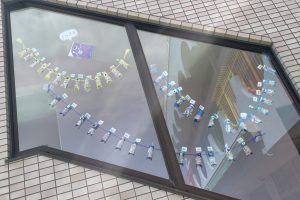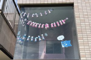 トイレットペーパーの芯にクラスカラーのおりがみを巻きつけて、画用紙で目を作ったり、形を凹ませてこいのぼりの尻尾を作ったり…