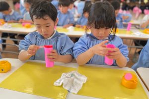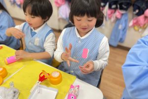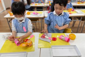年長さん最初の制作は、皆でこいのぼりを作りました!