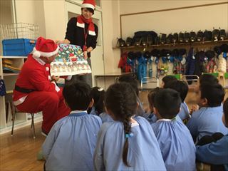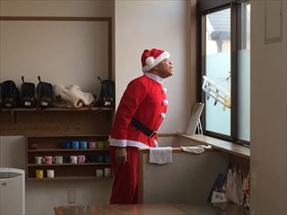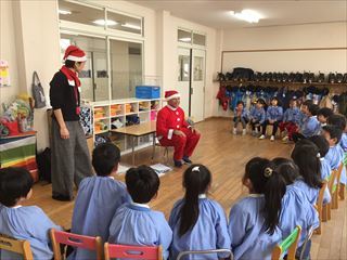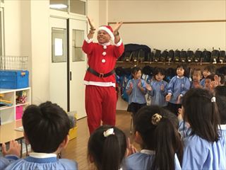 サンタさんの衣装を着たネイティブの先生が登場!!!