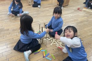 カプラで色んな建物を作りました。高さがある物や横に広いものどんなものを作ろうかと一人で考えたり友だちと作ったりと楽しんでいましたよ。