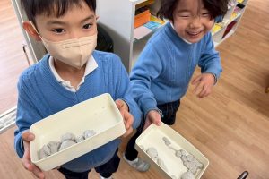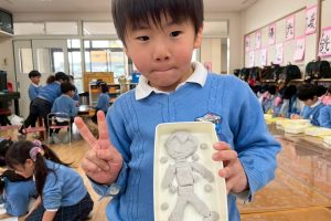粘土遊びでは可愛い人を作ったりと見せてくれては照れていました。お絵描きでは、こんなん書くねんと決めて集中して書いています。
