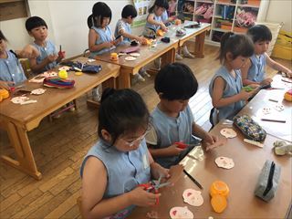 自分たちで画用紙に丸を描いてチョキチョキ……