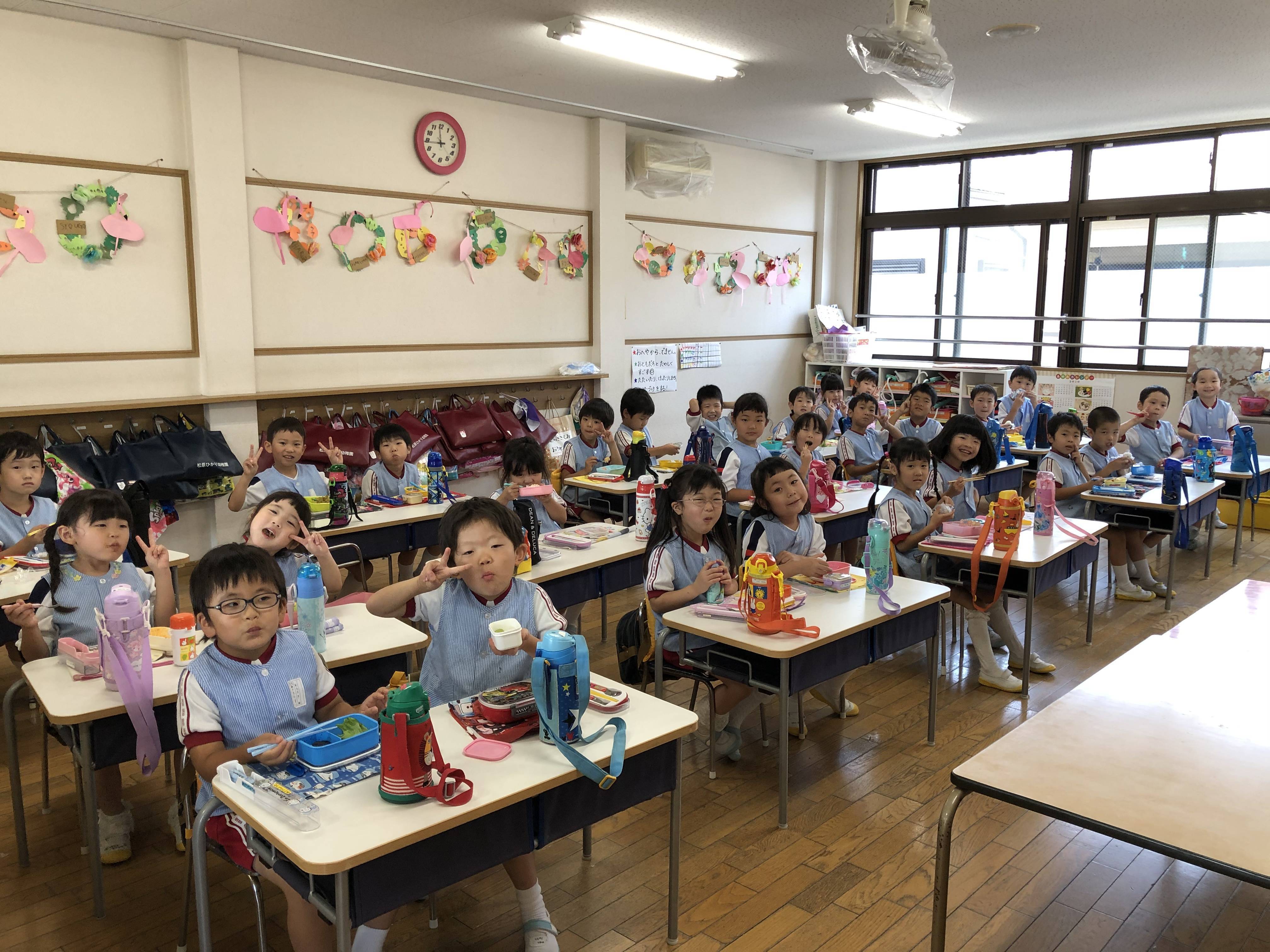 お家の人に作ってもらった愛情たっぷりのお弁当を「美味しい〜」と言って食べ、さっきまで緊張していたのも忘れて、みんな笑顔になっていました☆
