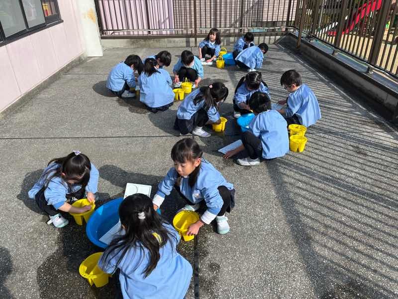「ここちょっと汚れてる!」「良いんじゃない?」とお友達同士で見合いながらお掃除しました〜!