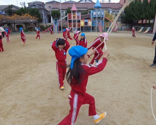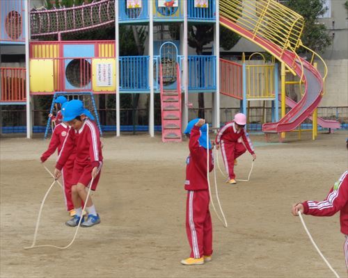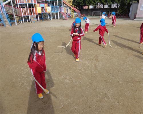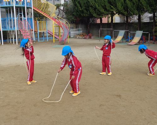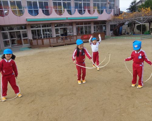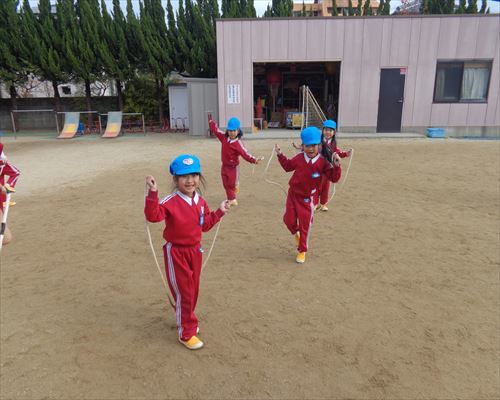 園では寒さに負けない体づくりとして、マラソンや縄跳びを頑張っています!!