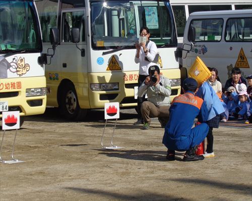 今回は先生だけでなく、お友達も数人消火器での消火が出来ました!