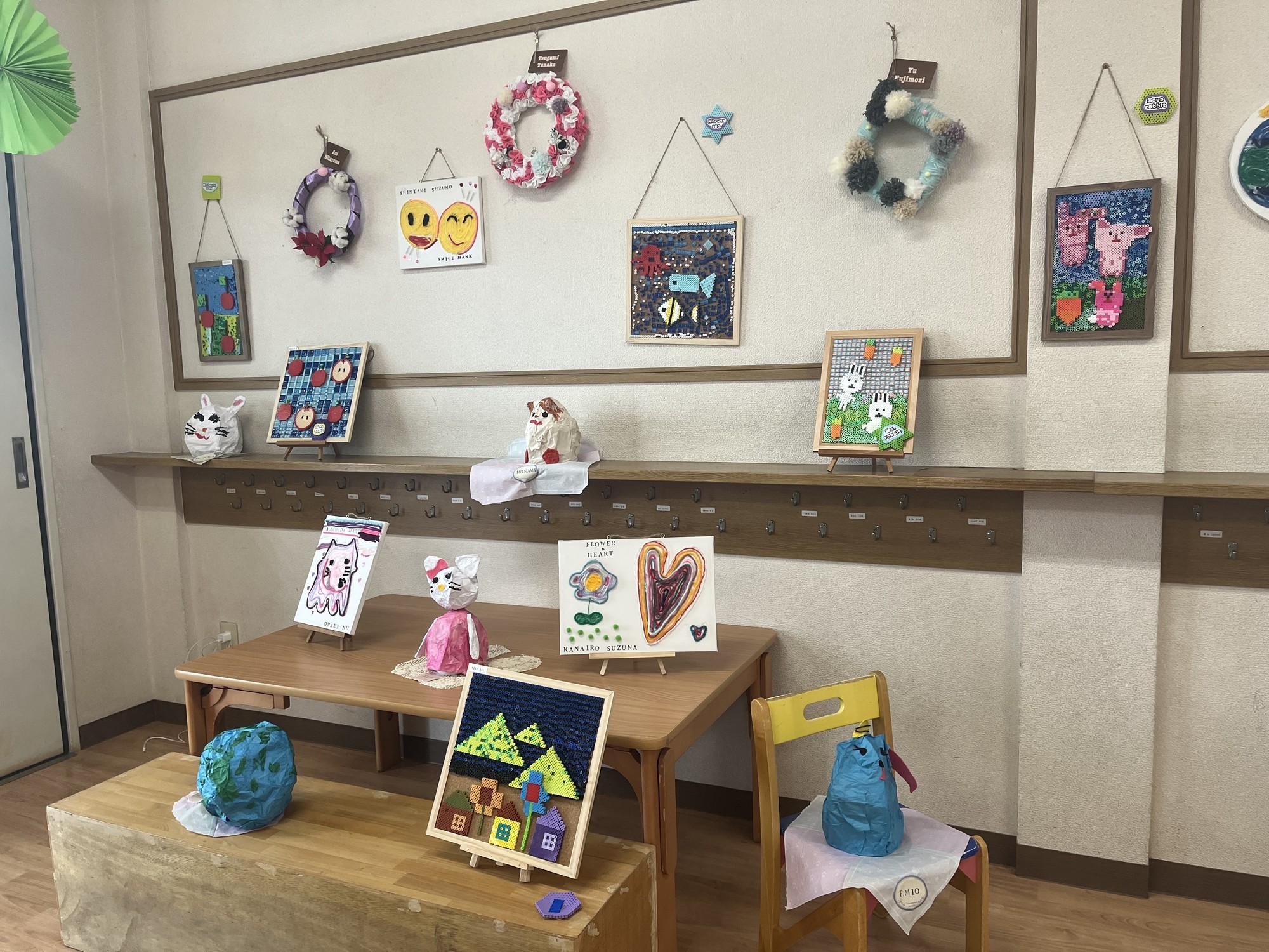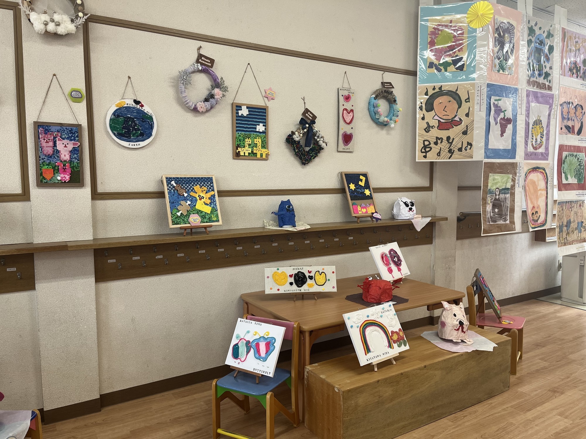 大作たちが飾られて、いつもの保育室が