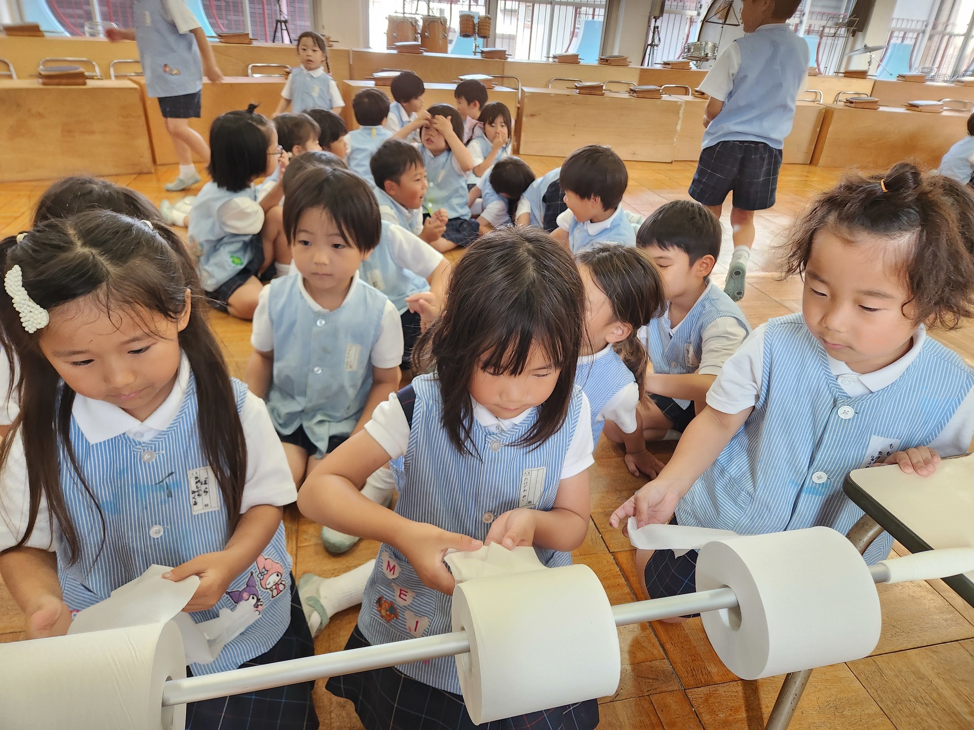 トイレットペーパーは2.3巻きとってきれいに切る練習をしました♪