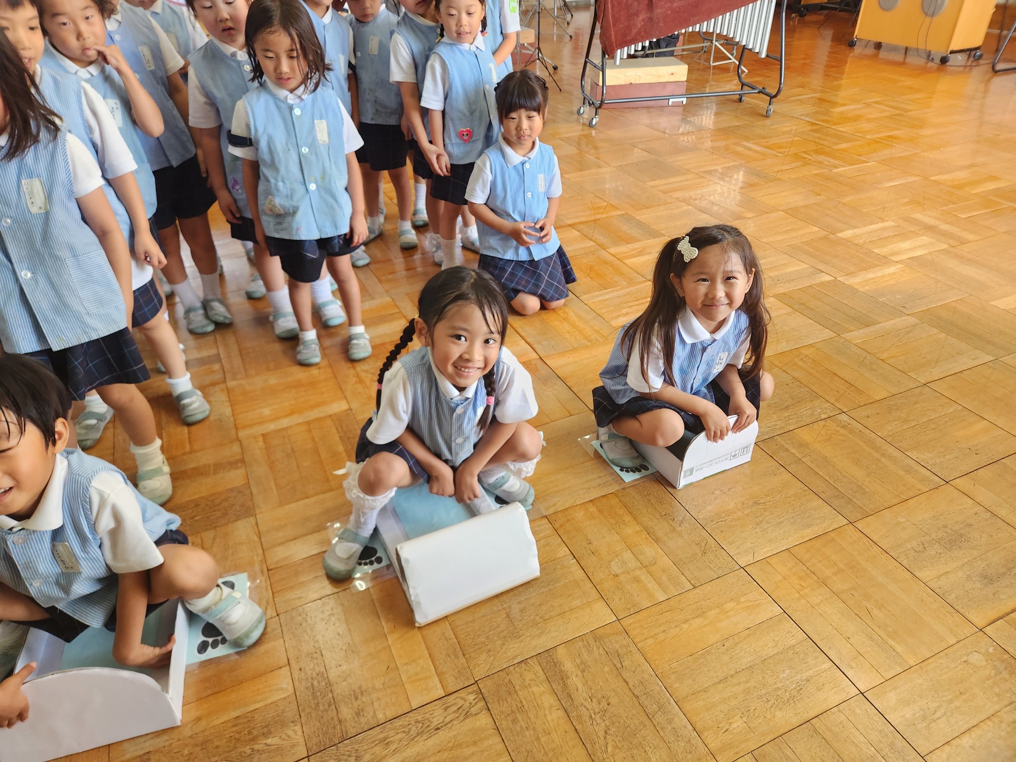 普段洋式トイレが多いので和式トイレに初めて座った子もしっかりお話を聞いて上手にできていましたよー☆