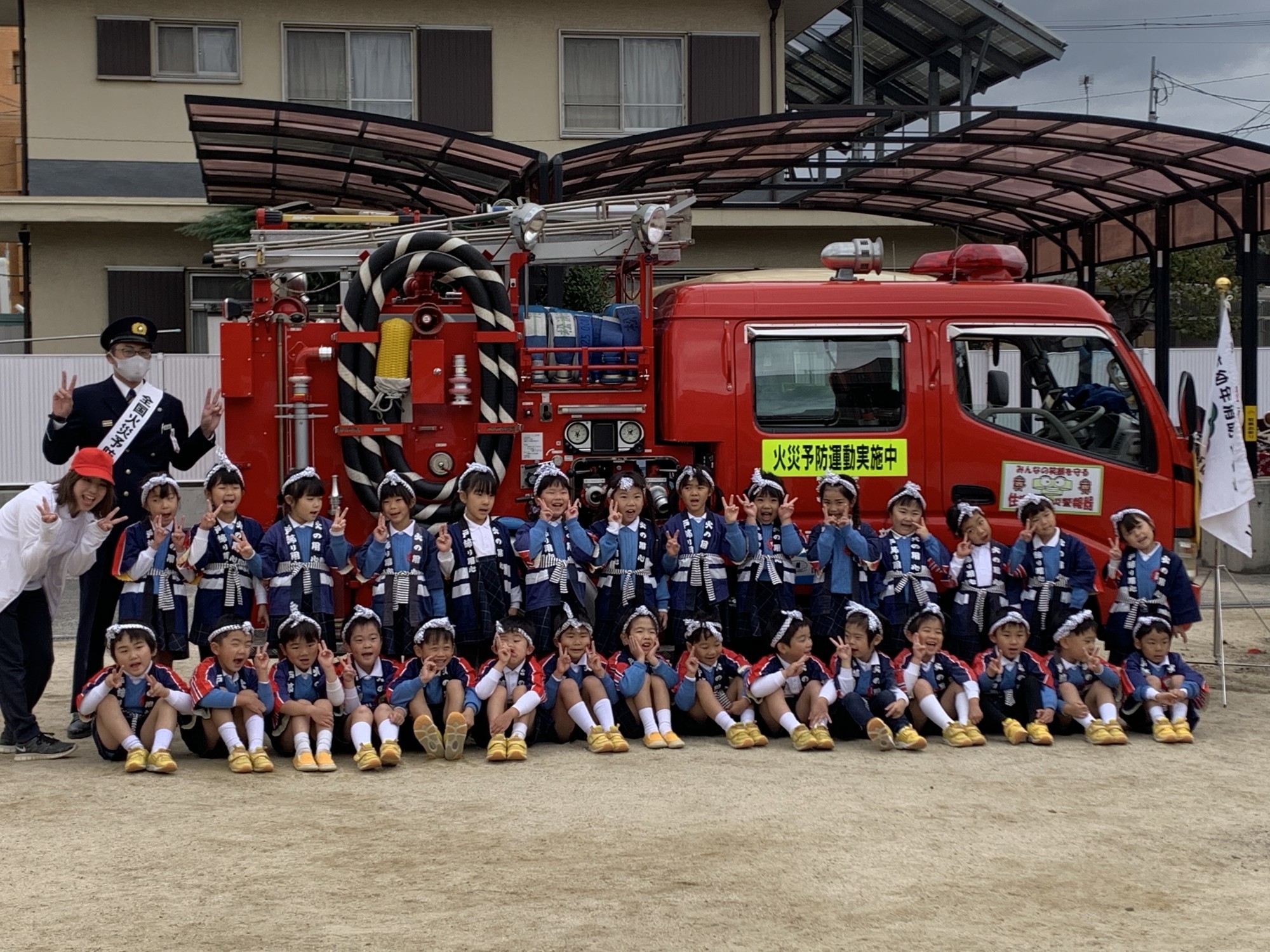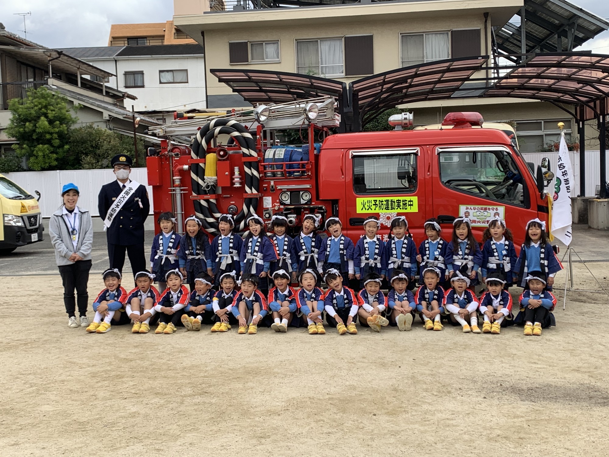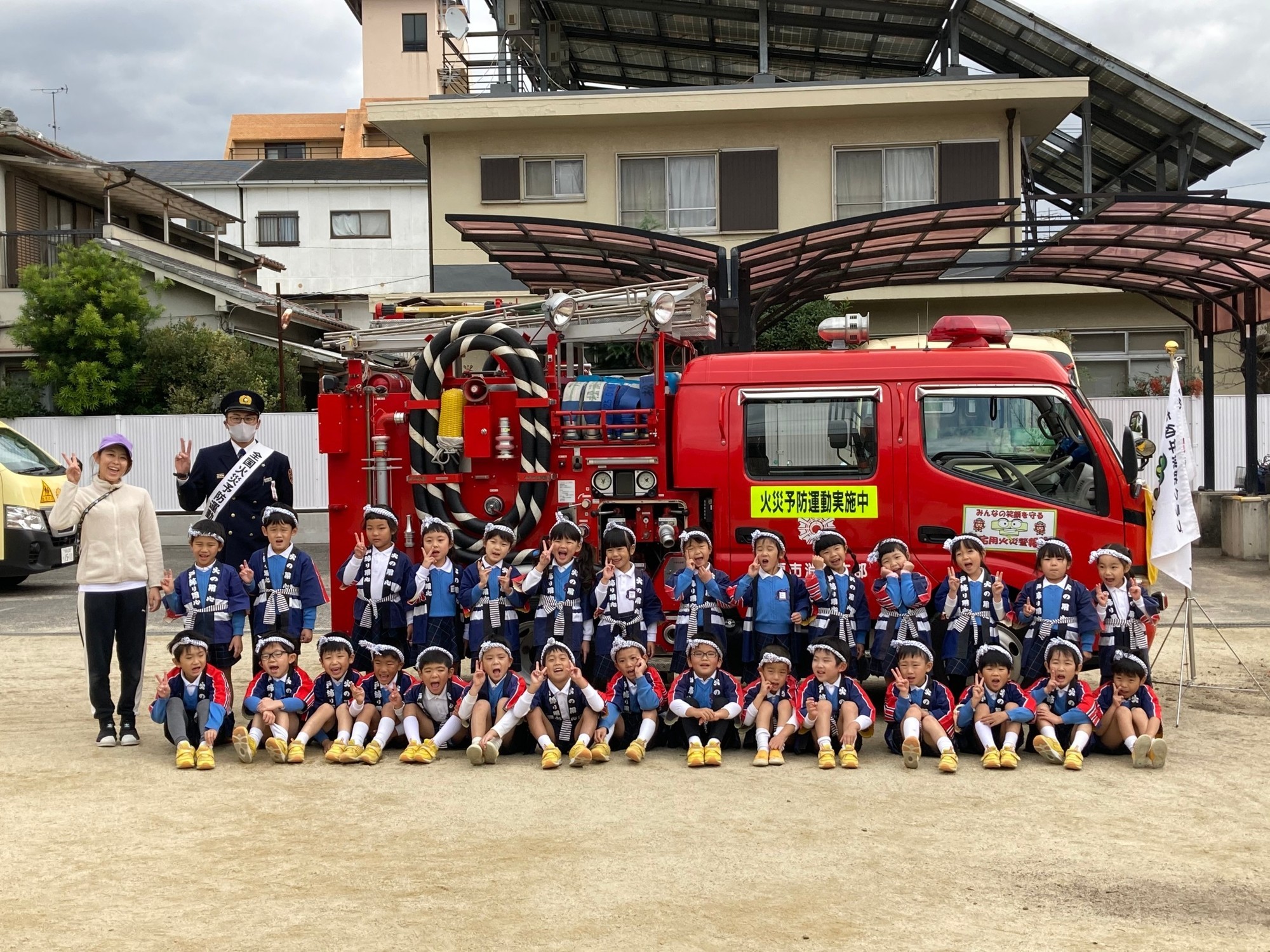 消防士さんのお話をよく聞いて、幼稚園の近所をぐるりと歩きました!