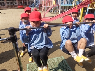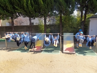 終ってからそのまま外遊びへ!鉄棒に挑戦!!