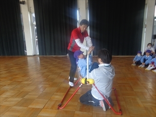 どっちかの足が動いていなかったりと意外と難しく、出来ていない子もいましたが、