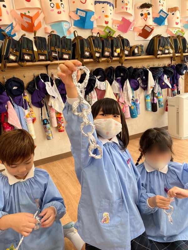 「アルミホイルくっつくからノリとか要らんな?!」「ねじったら綺麗にできるよ!」とお友達と一緒に協力しながら作っていましたよ♪