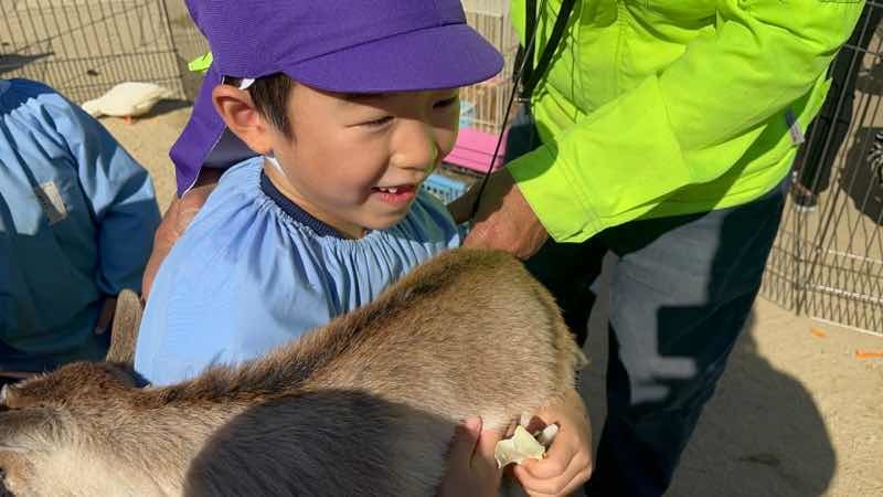 近づいてくるラマにそーっと恐る恐るエサを差し伸べていたり、「怖い!」と先生と一緒にあげていたり普段出来ない経験をたくさん出来ました!