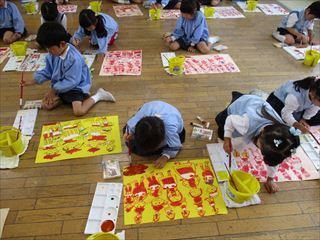 土の色を赤茶、こげ茶等を作って、混色を楽しみました!