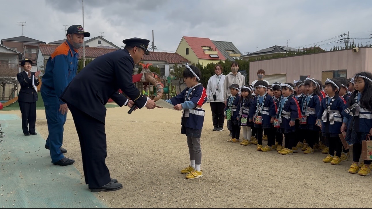 豆まき後は、幼年消防クラブ員の卒業式を行いました^^