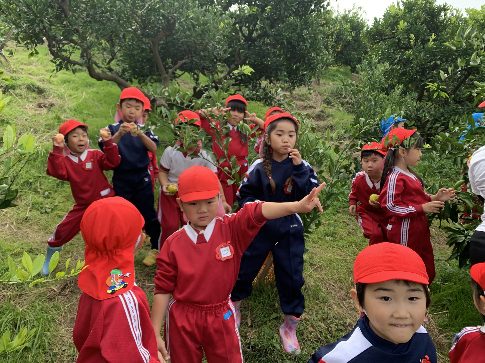 食べ終わってから少し時間があったので、少し上の方まで登ったり、またみかんを食べたりして探検しました♪