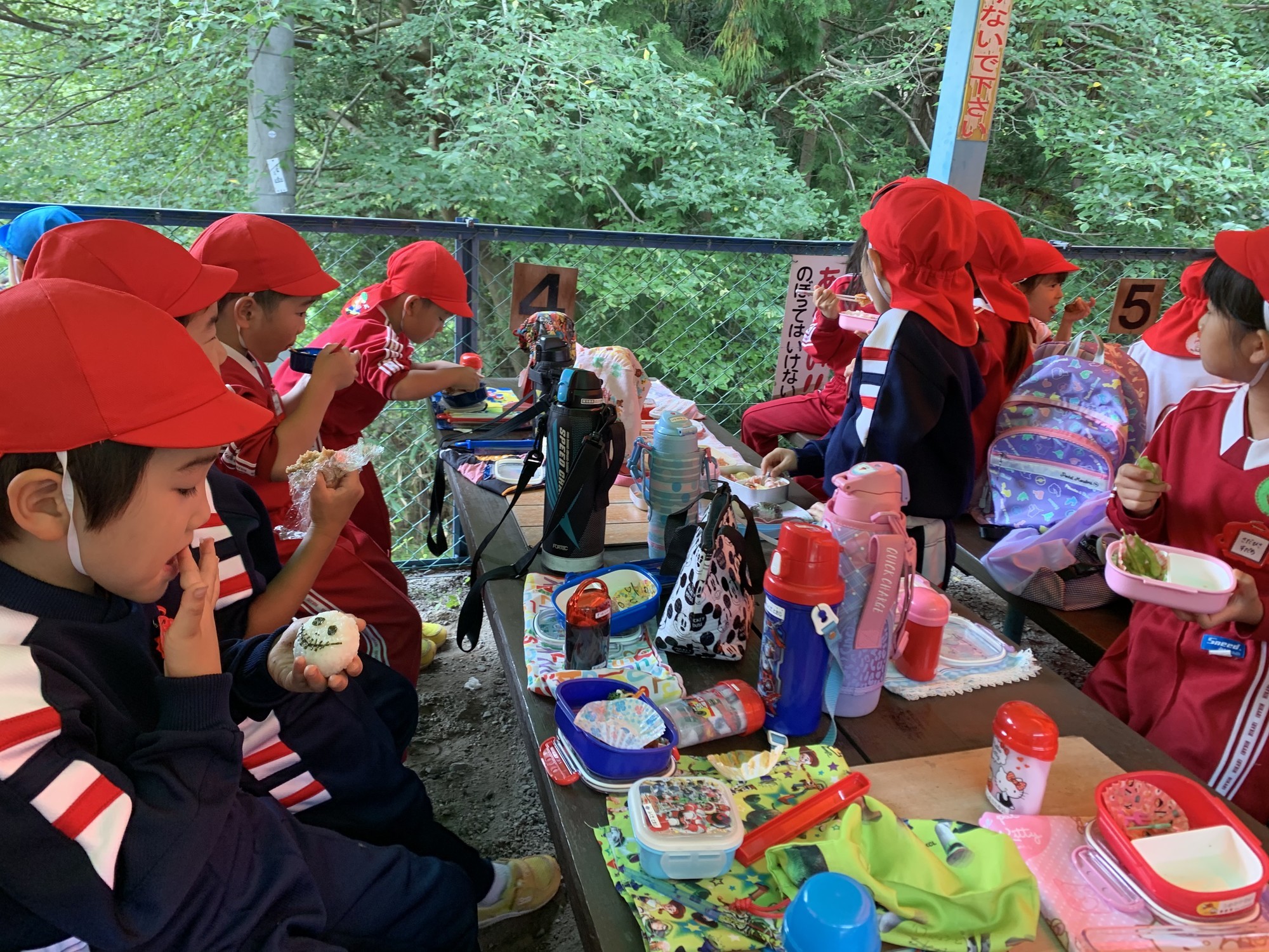 青組さん赤組さんで、「おべんとおべんとうれしいな〜♪」と歌を歌ってから食べました♪
