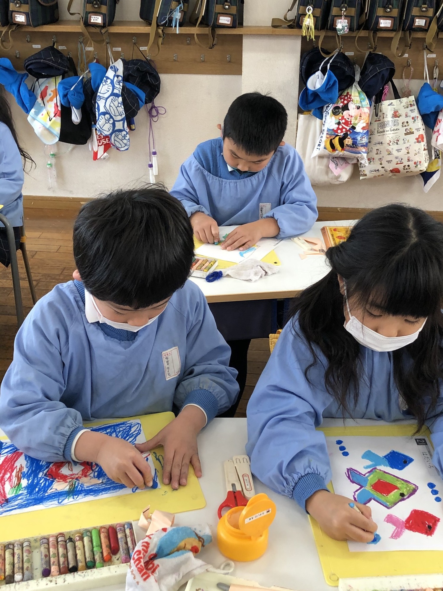 とても上手にハサミを使い、しっかりクレパスで塗り込んでいました(о´∀`о)