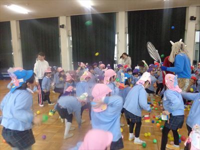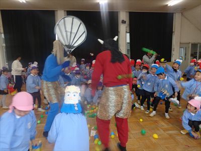 ホールでは火遊びをしている悪い鬼さんたちをやっつけました!!