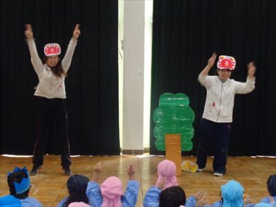 劇の後は、この前の朝礼であやか先生に教えてもらった『なんじゃもんじゃ忍者』をしました!!