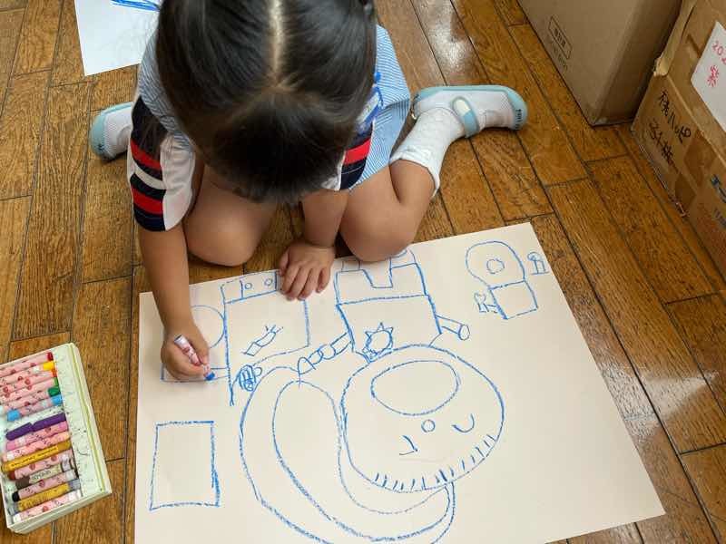 と、画用紙いっぱいにうがいをする自分と洗面所の様子を思い出しながら描いていました!
