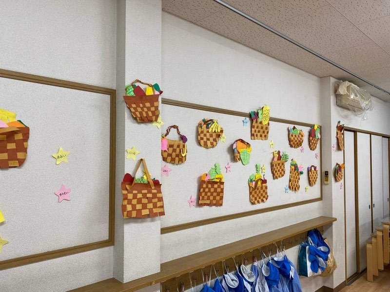 カゴは画用紙の編み込みに挑戦し秋の実りについてお話しました。