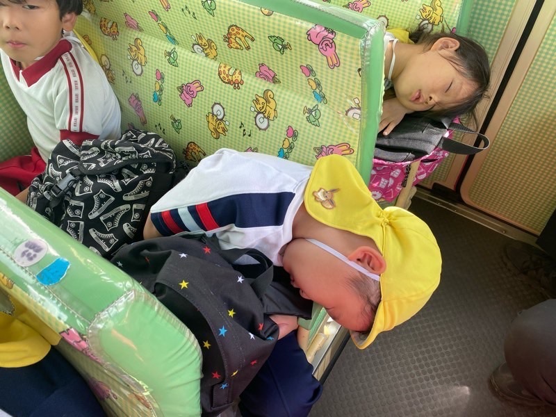 帰りはバスに揺られてぐっすり眠っている子も(p_-)